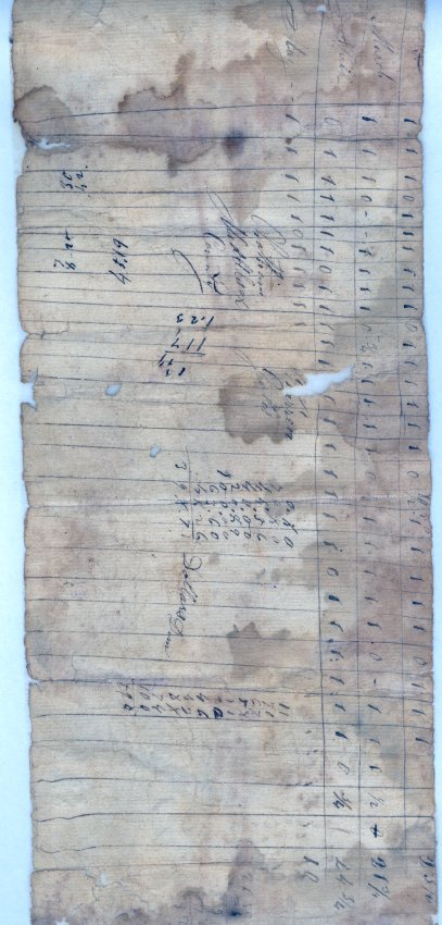 Account notes ascribed to W. Gates. Undated other than March, April, May appearing in the rows. Chatham, Middlesex County appears under the rows adjacent to Warren Gates name. One piece. 14" x 5".
