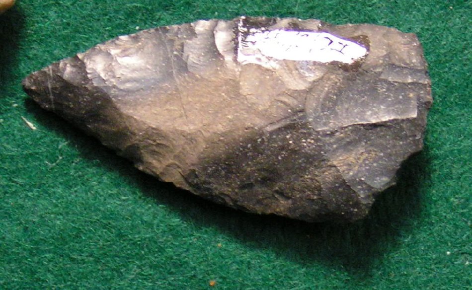 Lanceolate, slightly convex base, one corner of base broken.
