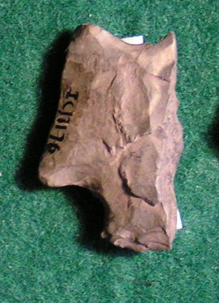 Side–notched flint arrowhead frag. – straight base, broken side and tip. No provenience.