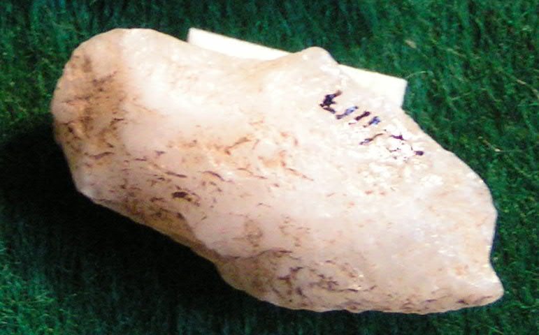Whitish quartz, broken tip like Rossville point. No provenience.