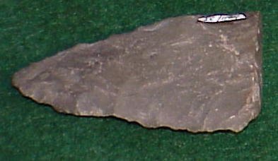 Dark gray flint; no notched, just tapering to a point. No provenience.
