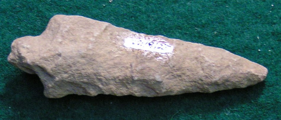 Full–stemmed, square long, narrow, flat base. Stanley, Archaic 7–9500 yrs.