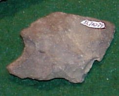 Flint arrowhead; bottom notches broken, as is base, very thin.