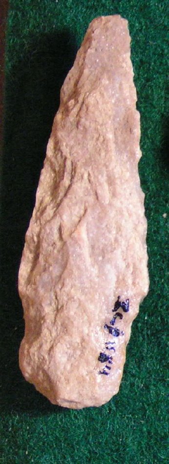 Straight stemmed, curved base, broken tip, dorsal curve, flat ventral surface. No provenience.