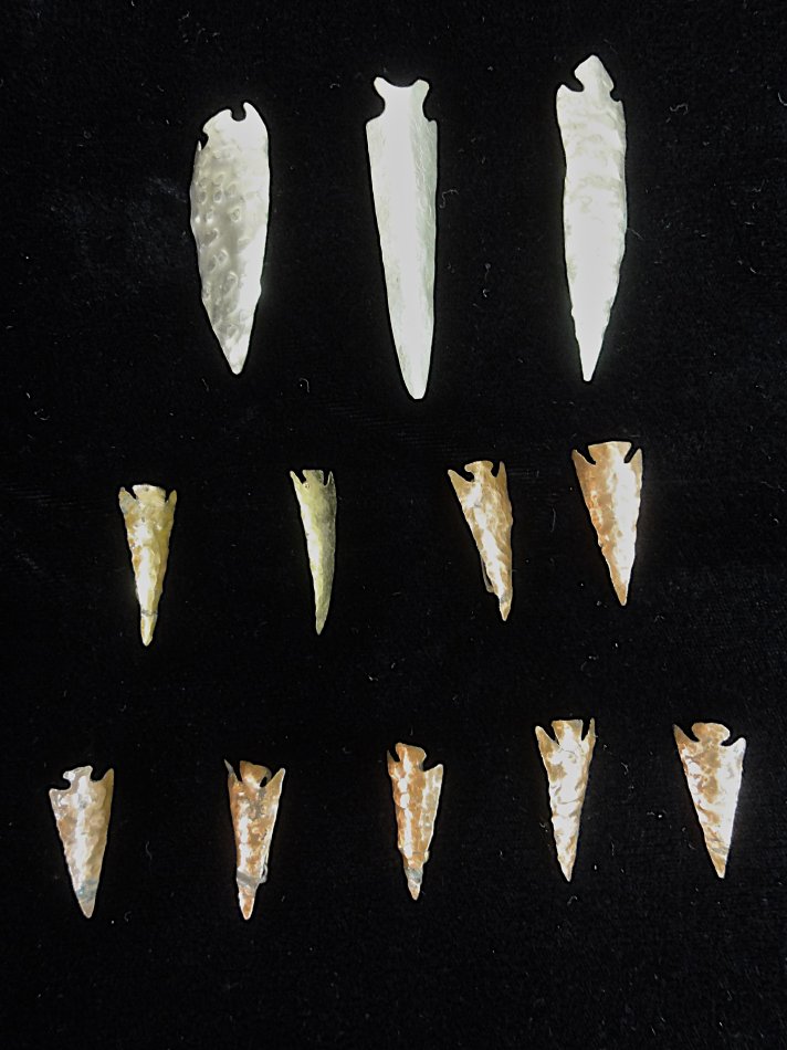 One dozen ( 3 silver & 9 copper ) Metal souviner jewelry pins of Arrohead design attributed to the Kickapoo Tribe of Indiana and made by craftsman: Edward C. Zimmer, E. Northport, New York