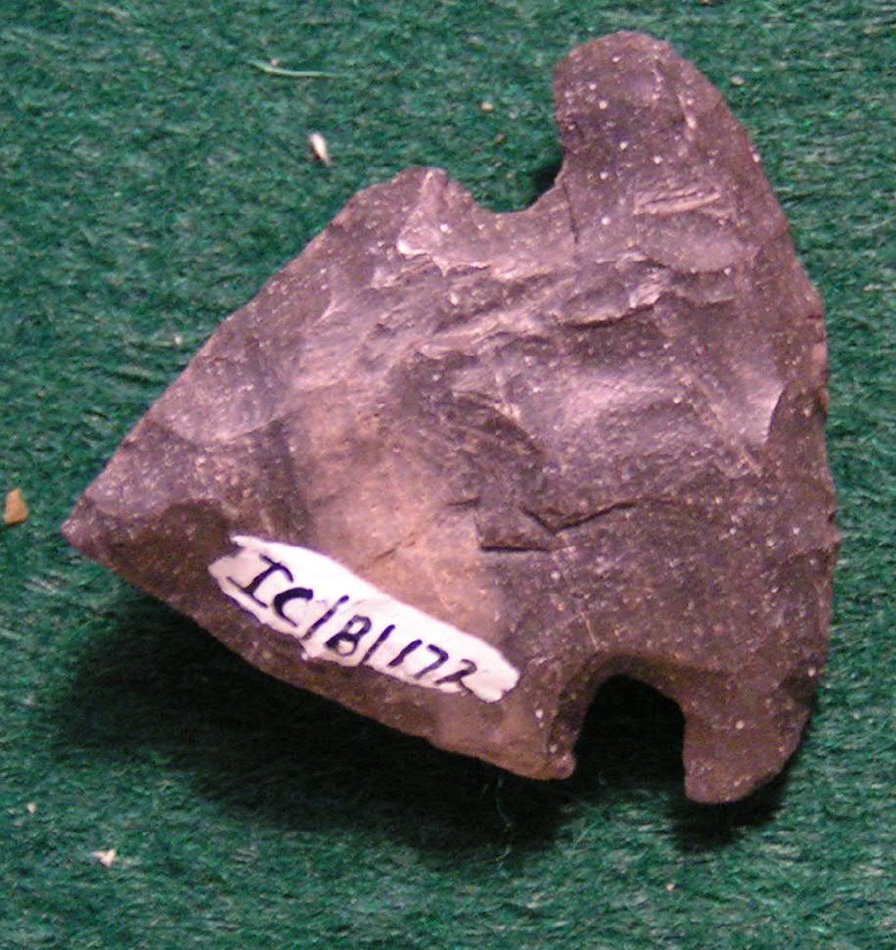 Side notched base convex, wider than shoulders, sides slightly excurvate.