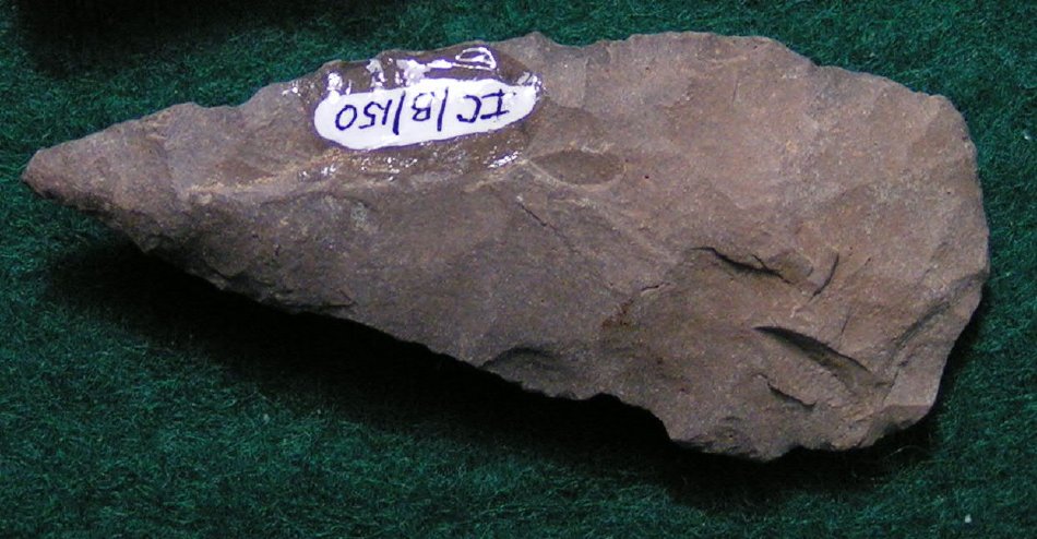Ovate, round base, thick center tapers near base.