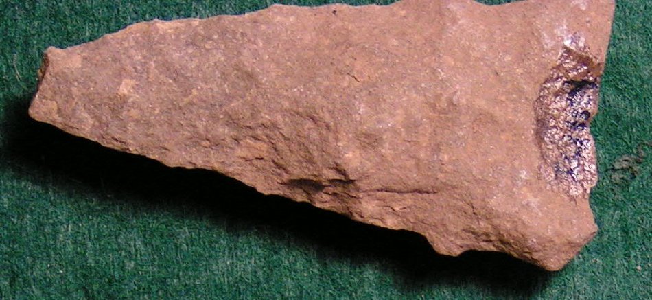 Double barbed, expanding stemmed arrowhead w/broken tip. No provenience.