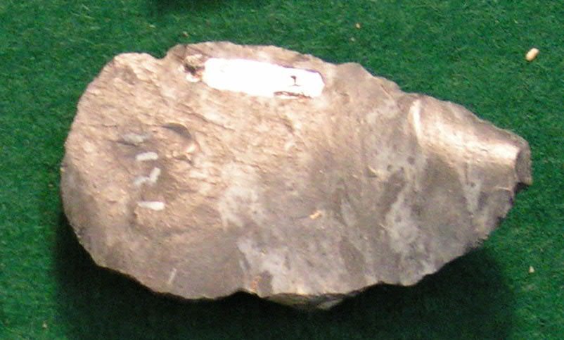 Smooth on one side _ other side shows traces of workings.