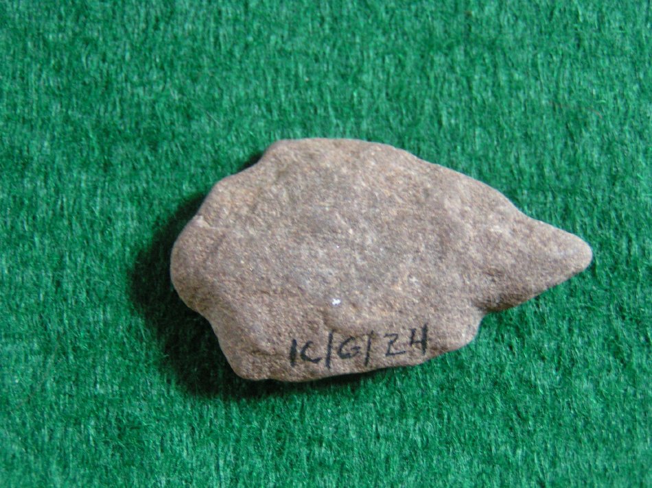 Blade generally ovoid in outline with excurvate edges. Broad lobate stem. Fairly thick and flat in cross–section.