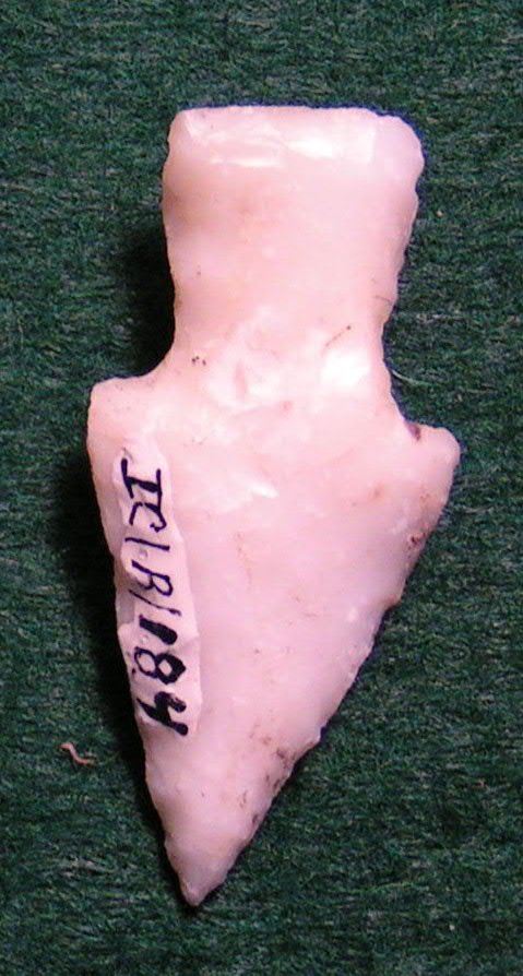 Full stemmed, long square stem, straight edges, flat base. Fine workings, smooth.