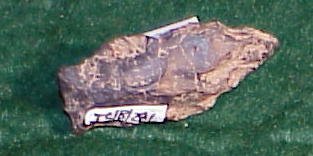 Bow sided, shoulderless, horizontal straight base, large flake scars. Cresap Lawn, MD. Wills Creek, Jan Thompson.