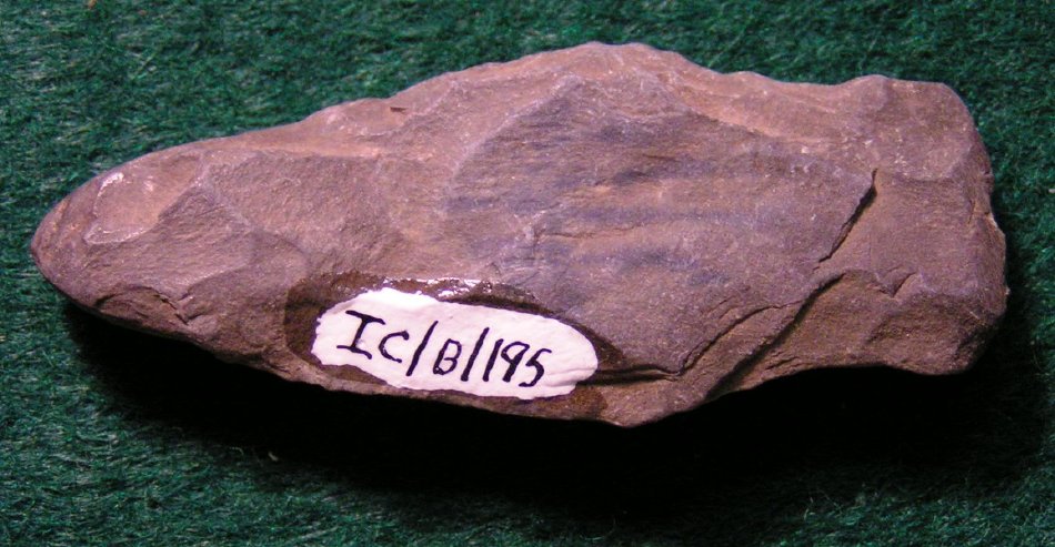 Long, narrow, tapered shallow arc, shallow side notches, base slightly convex.